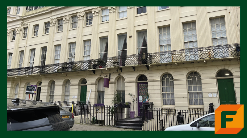 The former boutique hotel, located on Oriental Place in Brighton, comprises nine en-suite bedrooms, a bar lounge/reception area, and a separate one-bedroom owner’s flat.